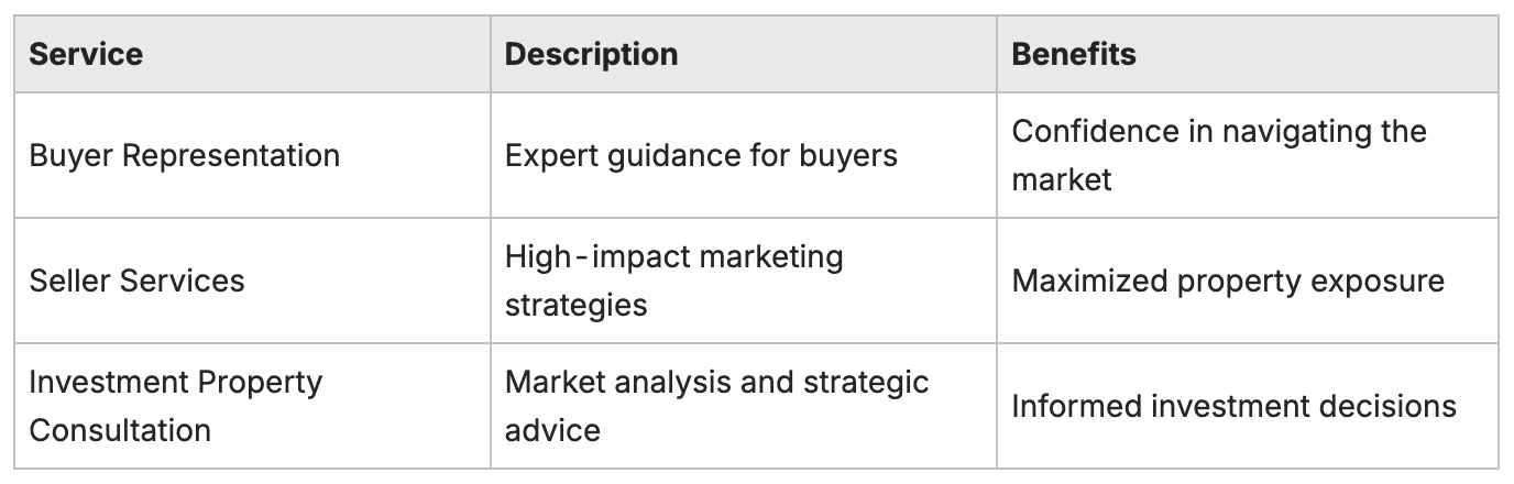 Investment Property Consultation: In-depth market analysis and strategic advice for investors looking to expand their portfolios.