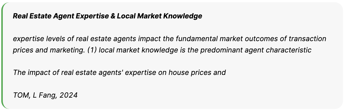 Indeed, the profound impact of an agent's local market knowledge and expertise on transaction outcomes is well-documented.