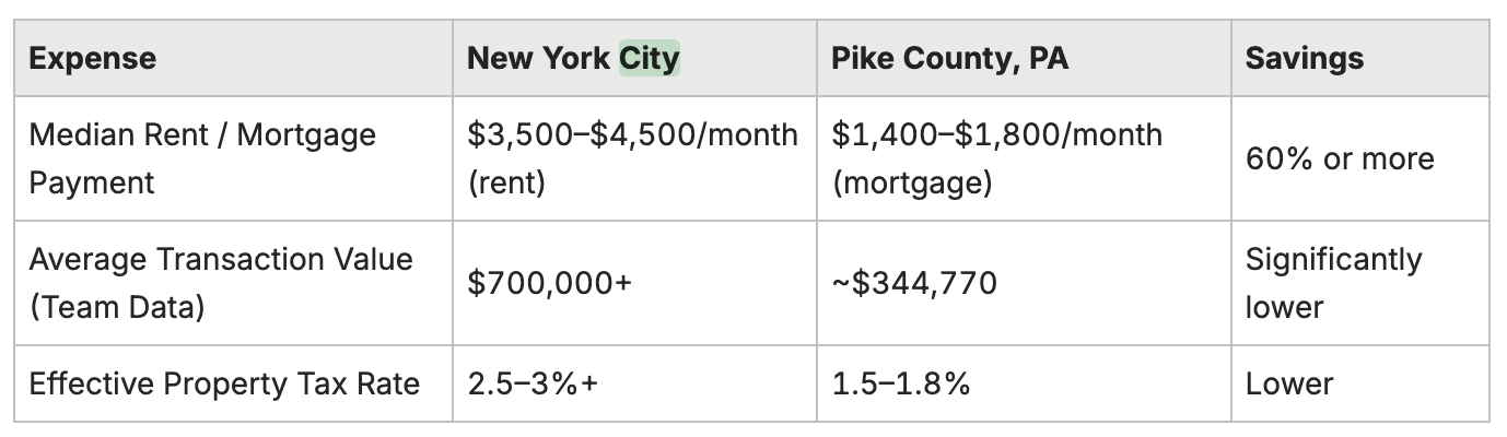 What Are the Tax and Financial Advantages of Relocating from NYC to the Pocono Mountains?
